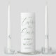 This modern script "Two Shall Become One" unity candle set with the bride and groom's names and initials as well as the wedding date is ideal for the the candle lighting ceremony at your wedding. It has side candles for the mothers/parents to light and a central candle for the bride and groom to light. It's beautiful, simple design it's perfect for any wedding. Using these candles at your ceremony will provide that extra special moment for all present. And, they make a lovely keepsake to be lit every anniversary.