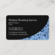 A modern plumber business card template with a water drops background and simple design layout you can customize online. Created as a business card for a new or existing Plumbing contractor, service.
