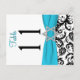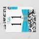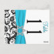 This double-sided aqua blue, white and black floral damask table number postcard with FAUX ribbon and Star of David brooch matches the Bat Mitzvah invitation shown below. **You must change the number 11 to each of the table numbers you need, add it to your cart, and then return and repeat the process until you have all the individually numbered cards that you need in your cart. Stand it on a small easel, or in your centerpieces. If you need assistance, email niteowlstudio@gmail.com.