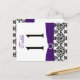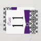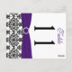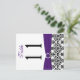 This double-sided black, white and purple damask table number postcard has a PRINTED ribbon and a PRINTED diamond and jewel brooch on it that matches the wedding invitations shown below. **You MUST change the number 11 to each of the table numbers you need, add it to your cart, and then return and repeat the process until you have all the individually numbered cards that you need in your cart. Stand it on a small easel, or in your centerpieces. If you need assistance, email niteowlstudio@gmail.com.