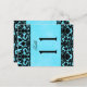 This double-sided blue and black damask table number postcard matches the wedding invitation and other items shown below. You must change the number 11 to each number that you need, add it to your cart, and then come back and repeat the process with each number that you need. If you have any questions, contact me at niteowlstudio@gmail.com.