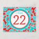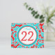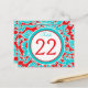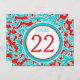 This modern and trendy double-sided turquoise blue, red, and white floral damask table number postcard matches the wedding invitation shown below. ****You must change the number 22 to each of the table numbers you need, add it to your cart, and then return and repeat the process until you have all the individually numbered cards that you need in your cart. Stand it on a small easel, or in your centerpieces. If you need assistance, email niteowlstudio@gmail.com.
