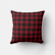Two-Sided Festive Checkered Christmas Holiday Dark Red, White, Green & Brass Plaid Home Decor Throw Pillow. Back Of Pillow Features A Simple Red & Black Checkered Plaid Pattern.