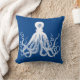 One side is navy blue, and the other side is burgundy. On both sides, a large white graphic of an octopus. Perfect for houseboats, sailboats, yachts, or nautically inspired rooms.
