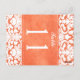 This double-sided orange and white damask table number postcard matches the wedding invitation and other items shown below. You must change the number 11 to each number that you need, add it to your cart, and then come back and repeat the process with each number that you need. If you have any questions, contact me at niteowlstudio@gmail.com.