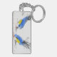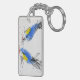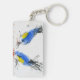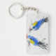 Two small titmouses pecking grain. Calligraphy Keychain