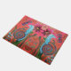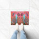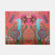 painting of two beautiful snails in blue with spiral shells on a bright pink background with flowers and leaves