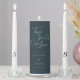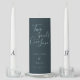 Two Souls One Love Quote Teal Monogram Date Unity Candle Set. Center pillar candle is a lovely shade of dark teal and features a romantic quote Two Souls One Love in an elegant calligraphy script with the couple's name below along with the wedding date. Each taper features the first monogram initial of the newly married couple. Design can be personalizes further by clicking Edit.