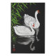 Faux wrapped canvas in a vintage Japanese illustration on two swans swimming and reflected jn a pool, In a dramatic white on black composition