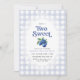This adorable “Two Sweet” birthday invitation features hand-painted watercolor blueberries paired with soft blue typography and a delicate gingham background. A perfect choice for a 2nd birthday celebration with a berry theme, blending sweetness with a classic elegant touch.