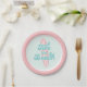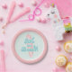 Two the Beach! Surfing Beach 2nd Birthday party plates with turquoise and pink surf board.