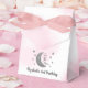 Two the moon! 2nd birthday with silver moon and stars with pink watercolor background