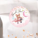 TWO the Moon | Girl Pink 2nd Birthday Classic Round Sticker