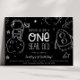 Invite friends and family to your child's second birthday party with this adorable outer space birthday invitation in a modern minimal black and white design.