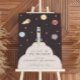 Let's blast off 'TWO THE MOON'! Celebrate your little space cadet with this fun and modern space birthday welcome sign.