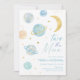 Two The Moon Pastel Blue Gold Birthday Invitation