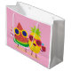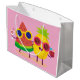 A fun and brightly colored pink and yellow gift bag for a gift to twins! Ideal for a summer twins' baby shower or birthday party. Watermelon and pineapple are having fun in the sun!