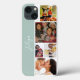 Personalize the phone cover with your favorite photos, easily can fit the photo to the area.5 photo collage iPhone 13 Case in saga green and white background . you can change the background color from edit design tool.