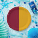 Clean, sharp, and striking — this customizable 9" round paper plate features a perfectly split two-tone design in golden yellow and deep maroon. A statement in balance and contrast, this minimalistic layout is perfect for upscale events, academic institutions, corporate banquets, or modern weddings. The symmetry demands attention and blends seamlessly into formal, cultural, or promotional environments.