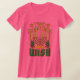 The material is a great quality that is hard to find with most tee shirts. Fabric was not see-through or thin at all, but was also very soft and comfortable. The shirt description states that it runs a little small, so I sized up one size for a perfect fit! I would definitely buy this type of tee shirt again because I love the fit and high quality fabric that I cannot find anywhere else. The printing was perfect and just as pictured. Loved the cute quote and really enjoy the tee in both the quality and design. I love quirky typography designs and funny quotes and I am extremely pleased with the overall quality and value I get at Zazzle!