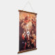 The polyester fabric displayed many wrinkles and several sharp creases throughout. At the bottom of the tapestry, I noticed a bulge in the fabric because it was not pulled tight enough before being connected to the wooden boards. It took me over an hour to spay water on the tapestry before putting it on an ironing board where I used a warm iron over a polyester cloth to remove the wrinkles and creases in the material. I was able to get out the wrinkles and creases that made that tapestry look as beautiful as its picture.