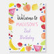 Welcome your party guests with an adorable personalized sign. This cute design features hand painted colorful watercolor fruits.
