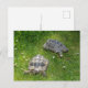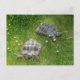 Two turtle`s in green grass postcard