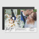 Magnetic photo thank you card personalized with two of your own wedding photos. Thank you written in an elegant swirly black script.