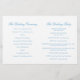 Double-sided simple two white doves with two blue ribbons wedding programme. Part of the white dove wedding stationary set. Pretty pastel blue and white shades. Edit this wedding programme with your own name, dates, ceremony wording, wedding party attendants and thanks . Simple yet elegant program simply replace sample text with your wedding information details and fold programs in half on delivery. Unique design by Sarah Trett.