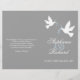 Double-sided simple two white doves with two blue ribbons wedding programme. Part of the white dove wedding stationary set. Pretty warm grey, pastel blue and white shades. Edit this wedding programme with your own name, dates, ceremony wording, wedding party attendants and thanks . Simple yet elegant program simply replace sample text with your wedding information details and fold programs in half on delivery. Unique design by Sarah Trett.
