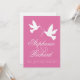 Two white doves pink ribbon formal wedding invite