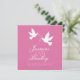 Plain white envelopes are included with paper invitations and will come to fit the invitation size you select. If you don’t need the envelopes, you may choose to not receive them by selecting the dropdown below "Envelopes" and choosing "None." If you’d like to have a design on your envelopes, you can browse all of these available envelopes to find the design that complements your Two White Doves Pink Ribbon Square Wedding Invite.