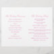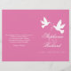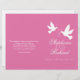 Double-sided simple two white doves with two pink ribbons wedding programme. Part of the white dove wedding stationary set. Pretty pastel pink and white shades. Edit this wedding programme with your own name, dates, ceremony wording, wedding party attendants and thanks . Simple yet elegant program simply replace sample text with your wedding information details and fold programs in half on delivery. Unique design by Sarah Trett.