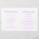 Double-sided simple two white doves with two purple ribbons wedding programme. Part of the white dove wedding stationary set. Pretty pastel purple and white shades. Edit this wedding programme with your own name, dates, ceremony wording, wedding party attendants and thanks . Simple yet elegant program simply replace sample text with your wedding information details and fold programs in half on delivery. Unique design by Sarah Trett.