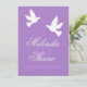 Two white love birds purple formal wedding invite