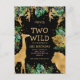 Two Wild 2nd Birthday Party Green Gold Black Postcard