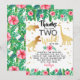 Two Wild Dinosaur Girls Second Birthday Thank You Card