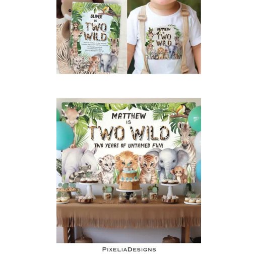 Two Wild Safari Animals Themed 2nd Birthday Designed by Pixelia Designs