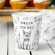 Two Wild wolf themed birthday party tableware personalized party cups, cute fluffy grey wolf cub some forest leaves for a wolf woodlands birthday party