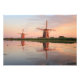 Photo print of two windmills along a river with reflection in the still water in the sunset light on a summer evening in the Netherlands.