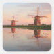 Photo sticker with two windmills along a river with reflection in the still water in the sunset light on a summer evening in the Netherlands.