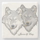 Stylish stone coaster with graphics of the faces of two gray wolves. Gray text is ready to personalize to read what you want. Great gift idea for anyone.