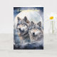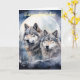 Two wolves in winter with snow, stars and moon. Suitable for a birthday for anyone