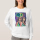Two women under the moon colorful abstract AI artwork. Bi racial couple or best friends. generativecontent