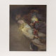 This design features a painting by the English painter, of the Victorian era, George Elgar Hicks (1824–1914). It shows two young girl sleeping next to each other as they rest in a train carriage on the journey home. They are dressed up in fine clothes and they have posies of roses and other flowers on their laps. Perhaps they have recently been to a family wedding or another grand event. The two girls are sleeping peacefully together: they appear relaxed and at ease. One of the girls has long blonde hair that is in curls, while the other girl has brown hair. The original artwork was painted in 1873.