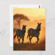 Two zebras trot across the African savanna at sunrise on this beautiful postcard. Perfect for anyone who loves nature, animals and the outdoors.