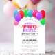 TWOrrific 2nd Birthday Balloon Banner Purple Invitation