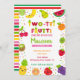 Having your Twotti Frutti 2nd Birthday Invitation match the theme of your party is a great detail that your guests will appreciate. The thoughtfulness of a consistent party theme is often appreciated and can show your guests that you can host a cohesive event.