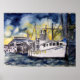 Tybee Island Georgia near Savannah GA shrimp boat nautical marine seascape boat on the intercoastal waterway river canal. These white boats are a gorgeous sight when traveling by water transportation waterway vessel original modern realistic watercolor painting.