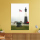 A photograph of the Tybee Lighthouse (located on Tybee Island outside of Savannah, Georgia) with the Tybee Island Lighthouse Station sign and American Flag on a canvas print